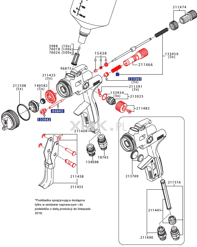 Jakość nie tylko można odnaleźć w ergonomicznej rękojeści ale również w częściach, które zawiera pistolet, jak regulator