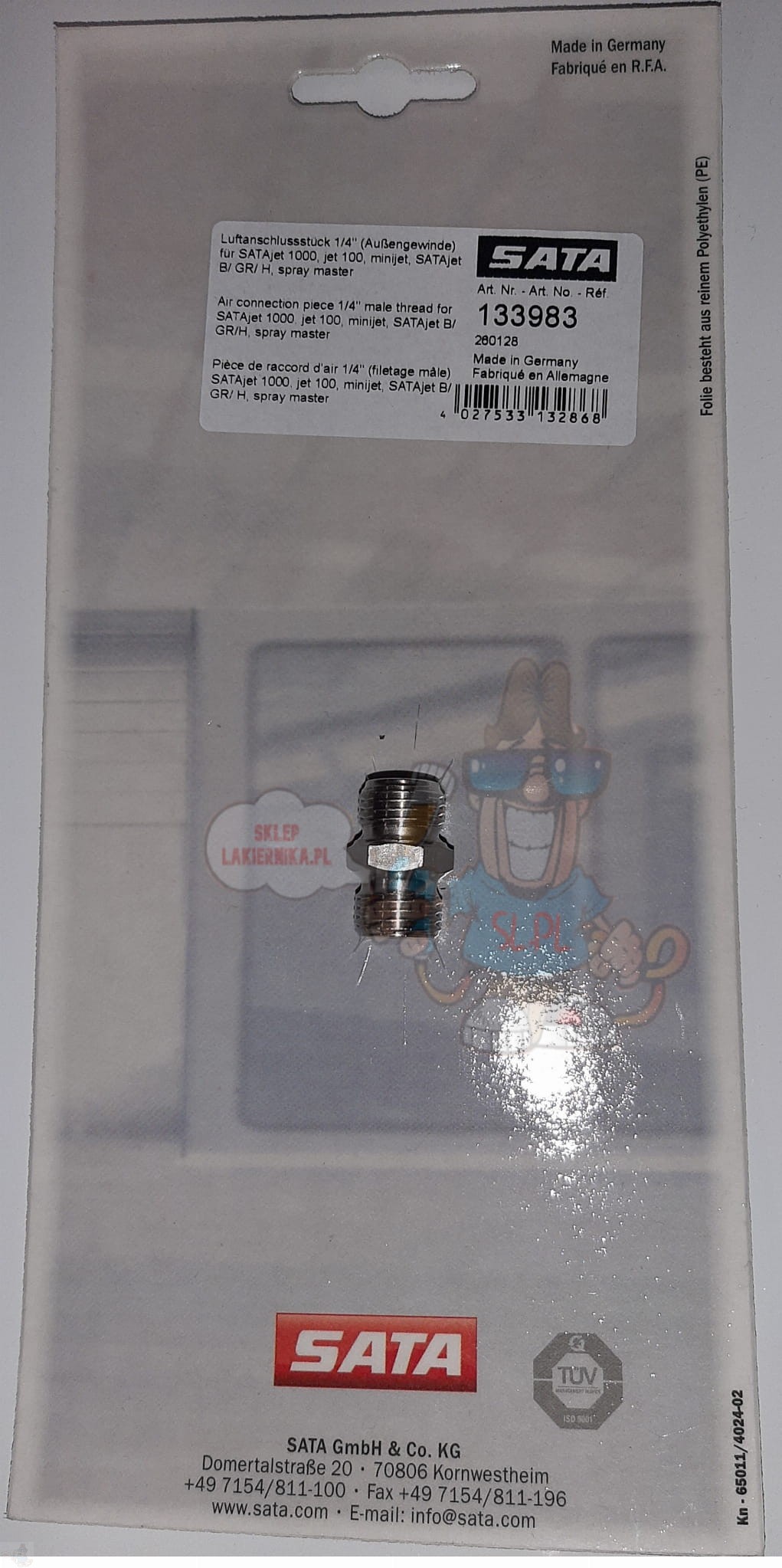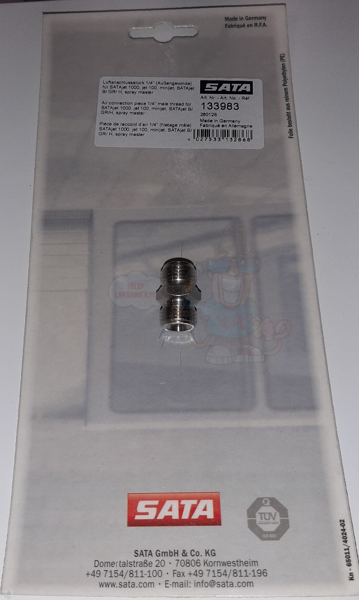 Część dedykowana do pistoletów lakierniczych Sata: 100 B, 1000 B, 1000 K, 1000 H, 1000 Lignum. 4400 minijet, ( RP i HVLP).