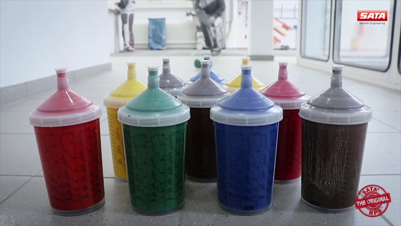 SATA RPS - zbiornik jednorazowy, niezwykle prosty system. Jedyny taki zbiornik do mieszania, lakierowania, dopełniania i przechowywania. Praca z tym systemem jest dla lakiernika bardzo prosta,ponieważ składa się on tylko z trzech elementów.