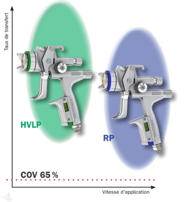 Oparty na technologii RP - Reduced Pressure (zredukowane ciśnienie) - zoptymalizowana technologia wysokiego ciśnienia dla maksymalnej prędkości aplikacji i minimalnych strat podczas natrysku. Stopień nanoszenia przekracza 65%. Pistolety SATA RP - spełniają warunki Unii Europejskiej i związanych z tym wymogami VOC oraz obowiązujących na terenie całej Europy jednolitym ustawom. Przestawienie się z techniki wysokociśnieniowej na technologię RP nie sprawia żadnemu lakiernikowi problemów. Może pracować "tak jak zawsze". Pistolety SATA RP określane są również jako "super szybkie".