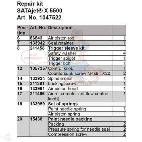 SATA Zestaw naprawczy DUŻY do X 5500 1047522